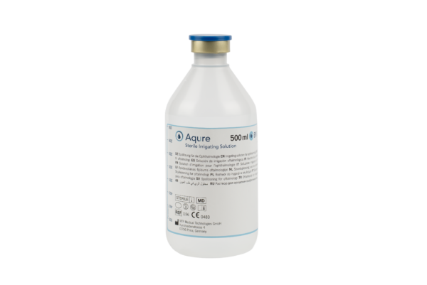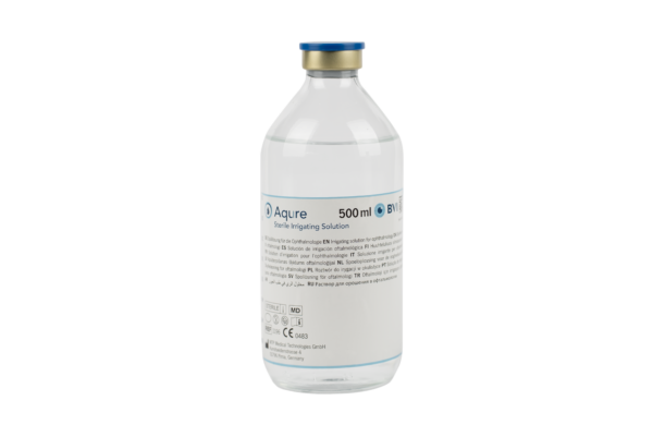 Aqure™ 20 ml (Kunststoffflasche) und Aqure™ 500 ml (erhältlich in Glas- oder Kunststoffflaschen) sind sterile, physiologische Spüllösungen für die ophthalmologische Anwendungen. Sie sind zur Spülung der Vorderkammer bei der Kataraktchirurgie sowie für andere intraokulare oder extraokulare Eingriffe bestimmt, einschließlich therapeutischer oder diagnostischer Anwendungen, bei denen eine Spülung oder das Aufrechterhalten der Feuchtigkeit erforderlich ist.