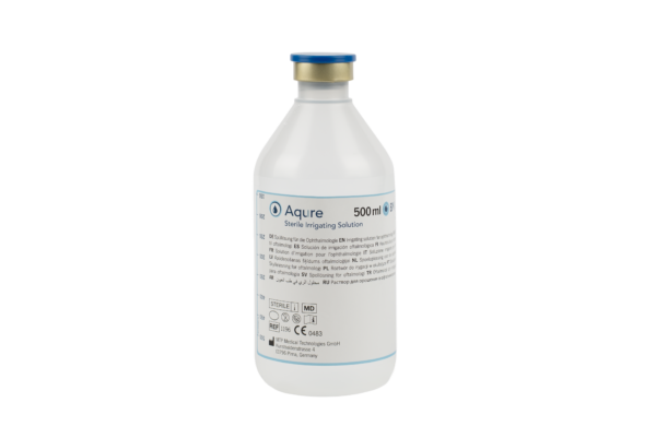 Aqure™ 20 ml (kunststof flesje) en Aqure™ 500 ml (verkrijgbaar in glazen of kunststof flessen) zijn steriele, fysiologische spoeloplossingen voor oftalmologische toepassingen. Ze zijn bestemd voor irrigatie van de voorste oogkamer tijdens cataractchirurgie, evenals voor andere intraoculaire of extraoculaire ingrepen, waaronder therapeutische of diagnostische toepassingen waarbij irrigatie of het behoud van vocht vereist is.